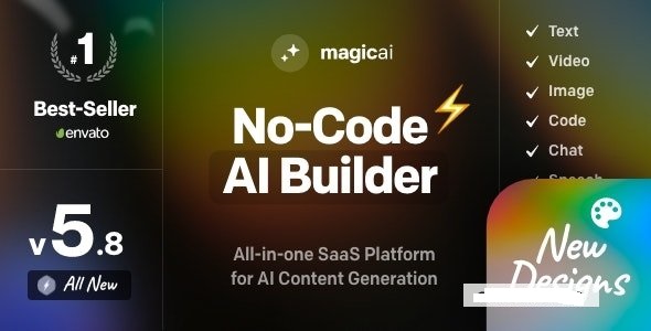 Last Update on Nov 28, 2024: AI Chat SmoothFlow Feature, OpenAI o1 Model, AI Support Portal, Bolt Theme (Paid), Share Chat, AI Assistant Training, Focus Mode (Paid), Flux Pro AI Image Model, AI Assistants (Chat), Code Quality Tool, Mailchimp Integration, AI Voice Isolation, AI Product Photography (Paid), User Roles, Advanced Plan Management, HubSpot Integration, GPT4-o Mini, New Modern Theme (Paid), UX Improvements for Plan Builder and Selectable Chat Models, Brand-New Dashboard Design, AI Avatar (Paid), Dashboard Announcements, User Onboarding, Announcements, Notification System, Maintenance Mode, Newsletter Segmentation, AI Model Selector, BrandVoice for AI Chat, New User Dashboard, Advanced User & Tool Analytics, New Admin Dashboard, Detailed Plans & Pricing Page, New Text to Speech Page, Photo Studio Shortcuts, New Dark Theme (Paid), Improved WordPress Integration, Menu Builder (Paid), API Cost Management, Advanced User Analytics, AI Photo Studio, AI Writer Templates, Social Media Automation (Paid), GPT-4o Integration, SEO Tool (Paid), Gemini API, Azure Text to Speech, Two-Factor Authentication, Claude API, Custom Designs for Frontend and Dashboard Pages, Revolutionary MagicAI Marketplace, and more…
