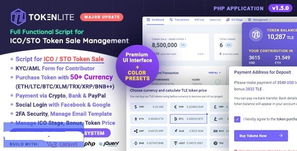 TokenLite – ICO / STO Token Sale Model Dashboard for ICO Startup / ICO Operator or Cryptocurrency Based Company.
